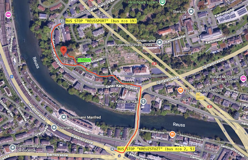 From the Luzern Bahnhof it is around 2 km by walk.